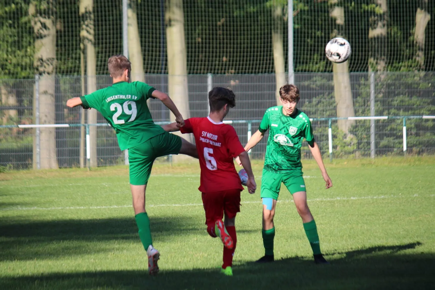 Zum Donnerstagabend und bei guter Kulisse konnte unsere B ihren Saisonauftakt erfolgreich gestalten. Davor standen aber 80 spannende Minuten. Die erste Hälfte gestaltete sich relativ offen, wobei die Gäste zunächst sogar etwas mehr vom Spiel hatten, da sich unsere Abwehrkette aufgrund einiger Ausfälle noch zurecht finden musste. Trotzdem gingen wir durch einen schönen Abschluss von Paul N. in Führung. Den Ausgleich der Gäste konnten wir nach einem klugen Pass von Aleks auf Jan, der den Ball frei vor den Keeper souverän verwandelte, noch vor der Halbzeit zur erneuten Führung kontern.