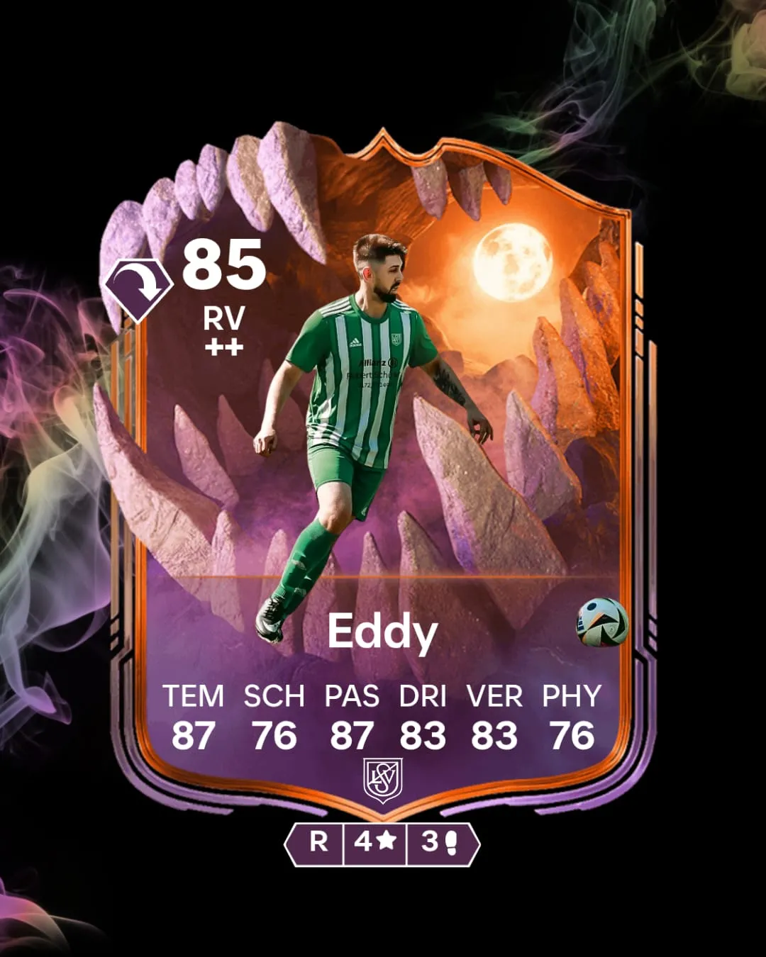 Eddy ist als Außenverteidiger im Einsatz und macht seine Arbeit herausragend. Als sein Bruder im Herbst verletzt ausfiel, nahm er dessen Rolle in der Innenverteidigung ein und spielte auch dies äußerst überzeugend. Er strahlt als Außenverteidiger Ruhe am Ball aus und agiert sehr zweikampfstark. Offensiv schaltet er sich oft mit guten Außenbahnläufen mit ins Spiel ein.