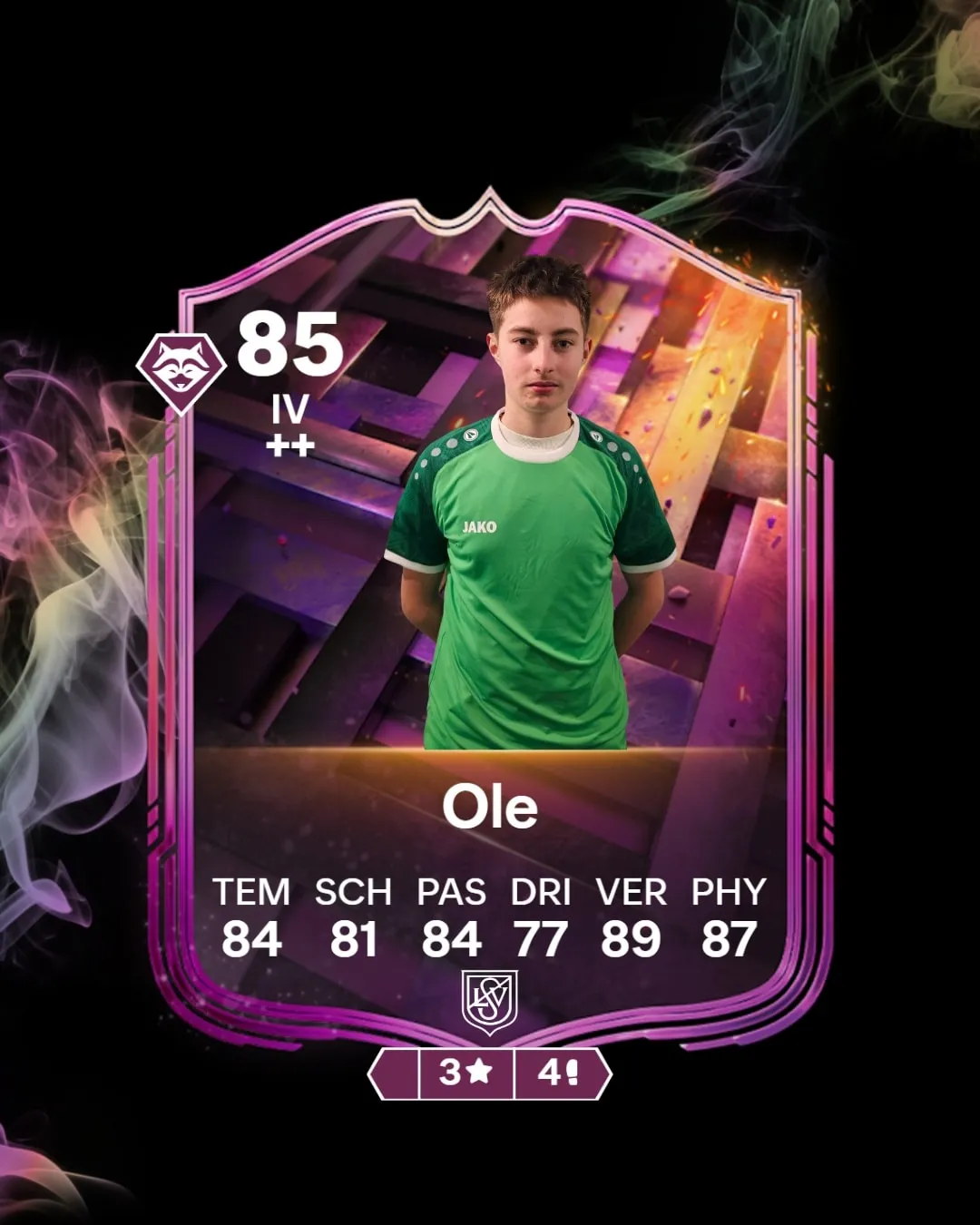 Ole hingegen fühlt sich eher auf der anderen Seite des Spielfeldes wohl. Als Inenverteidiger wird er ab sofort dafür sorgen, dass der Gegner möglichst weit von unserem Tor weg bleibt. Mit Übersicht, Antizipation und zur Not auch einer präzise Grätsche bringt er alles mit, was einen Topverteidiger auszeichnet.