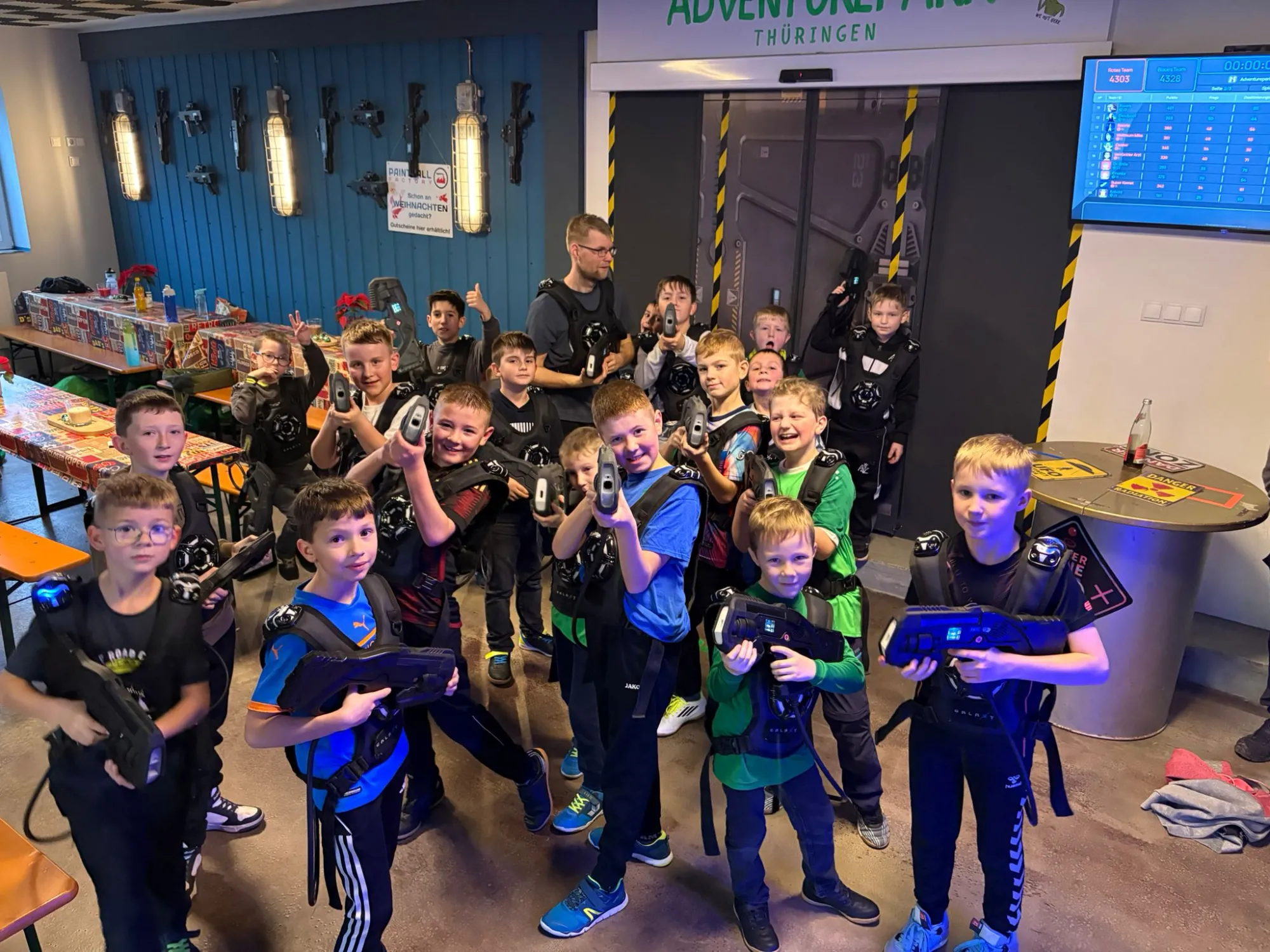 Den Start machten die E- und F-Junioren. Diese verbrachten zunächst einen actionreichen Nachmittag beim Lasertag in Ohrdruf, ehe man dann in der Luisenthaler Halle einkehrte und bei den ein oder anderen Spielen und Pizza den Abend verbrachte. Zusätzlich dazu gab es noch für jeden eine dicke Winterjacke als Weihnachtsgeschenk und auch die Trainer durften sich über eine Überraschung ihrer Schützlinge freuen. Ein großes Dankeschön dafür!