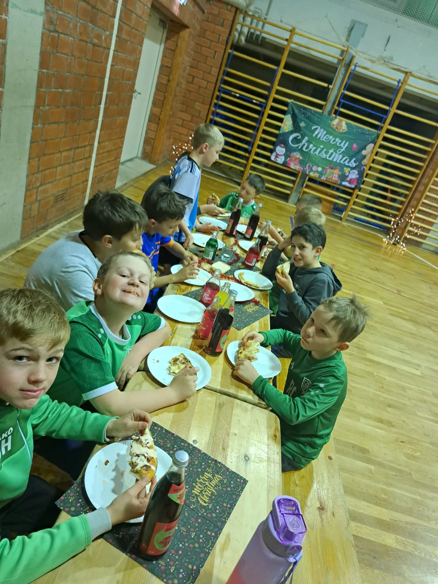 Den Abschluss der bisherigen Weihnachtsfeiern machte dann gestern unsere C. Bei zunächst spannendem Fußball konnten die Jungs sich nochmal Platz für das Weihnachtsessen machen, welcher anschließend jedoch bereits wieder von Döner und Pizza eingenommen wurde. Kleine Geschenke durften dabei allerdings auch nicht fehlen. So gab es für jeden Spieler einen personalisierten Schuhbeutel, damit niemand mehr ohne Schuhe beim Auswärtsspiel steht.
